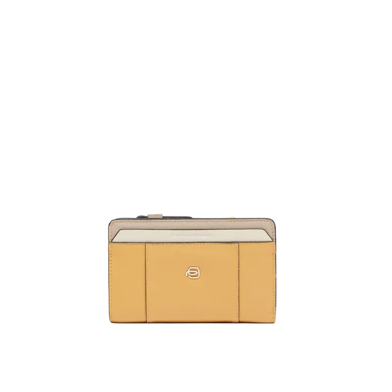 Portafoglio donna medio con zip in pelle Piquadro Circle, giallo-beige