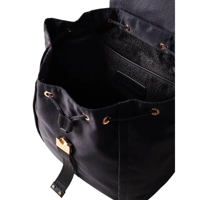Zaino donna in tessuto riciclato e pelle Borbonese, nero