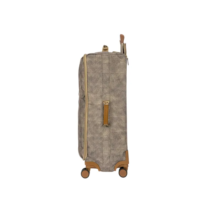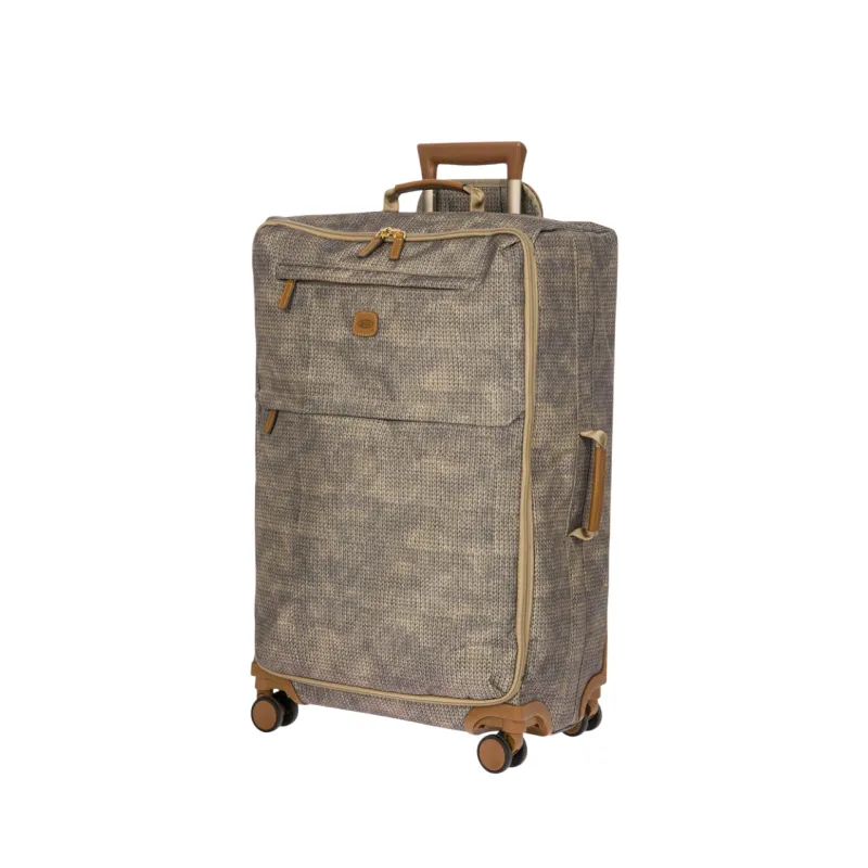 Trolley medio della collezione X-Collection di Bric's, realizzato in resistente tessuto riciclato, con struttura rigida e leggera. L'apertura principale è dotata di zip con doppio cursore. Due tasche frontali con zip, tasche interne e cinghie per un'organizzazione ottimale degli spazi. Le ruote sono silenziose e piroettanti per garantire il movimento agevole a 360°, e sono incassate per massimizzare la capienza interna del trolley. Le maniglie imbottite, i tubi in alluminio robusti e stabili e l'impugnatura ergonomica del traino garantiscono il comfort di utilizzo. Dotato di porta indirizzi integrato e anellini per predisposizione a chiusura con lucchetto (venduto separatamente). Arricchito da vera pelle, il segno distintivo di Bric's, e dai dettagli logati.