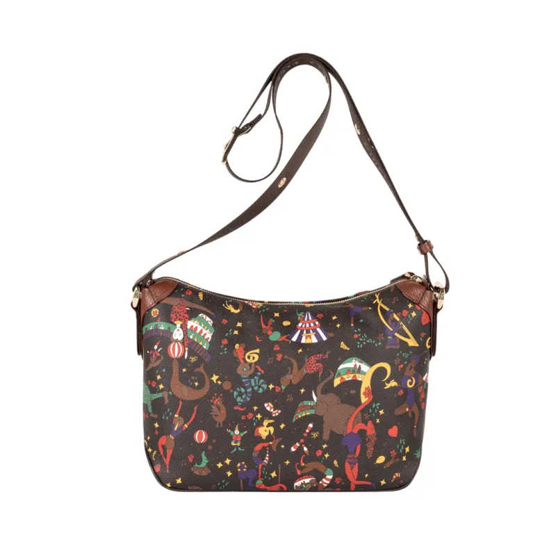La borsa a tracolla Beatrice della collezione Magic Circus di Piero Guidi è un accessorio raffinato e ricco di fascino artistico, ideale per chi ama distinguersi con stile. Realizzata in tessuto goffrato con l’inconfondibile stampa Magic Circus, è arricchita da riporti in cuoio che ne esaltano la qualità artigianale e la resistenza nel tempo.