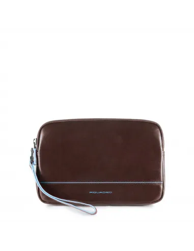 Pochette con manico removibile della collezione Blue Square di Piquadro, dotata di apertura con cerniera.