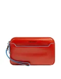 Pochette uomo della collezione Blue Square di Piquadro, realizzata in pelle, dotata di due comparti con zip, polsiera rimovibile, tre fessure per carte di credito, protezione RFID.