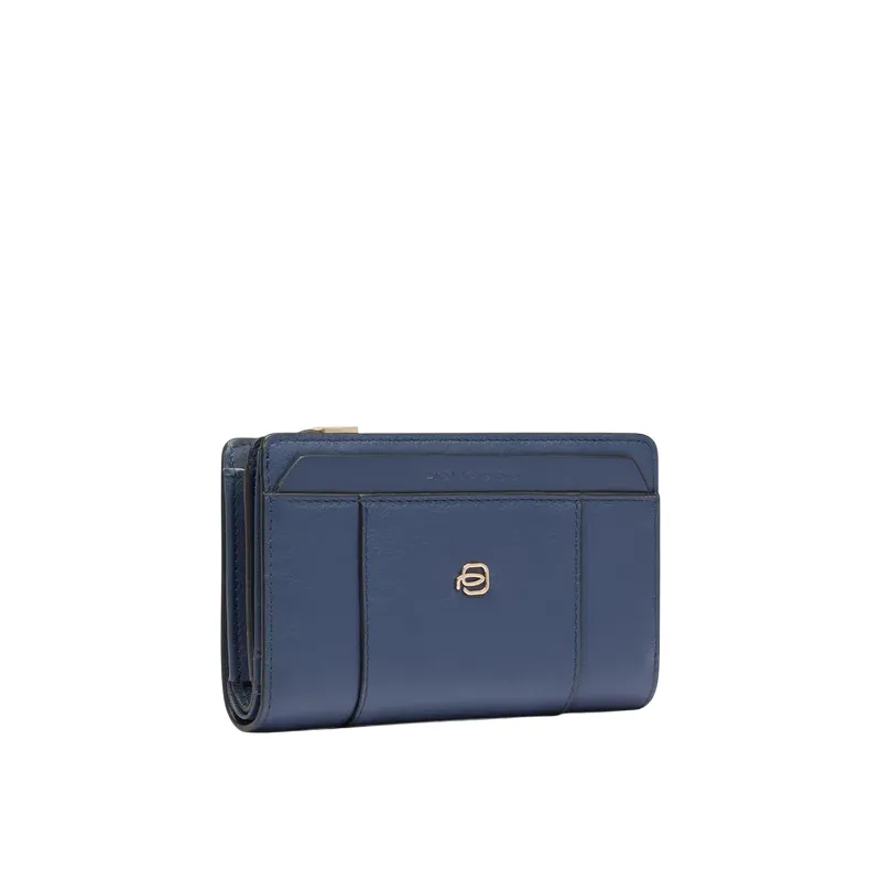 Portafoglio donna medio con zip in pelle Piquadro Circle, blu
