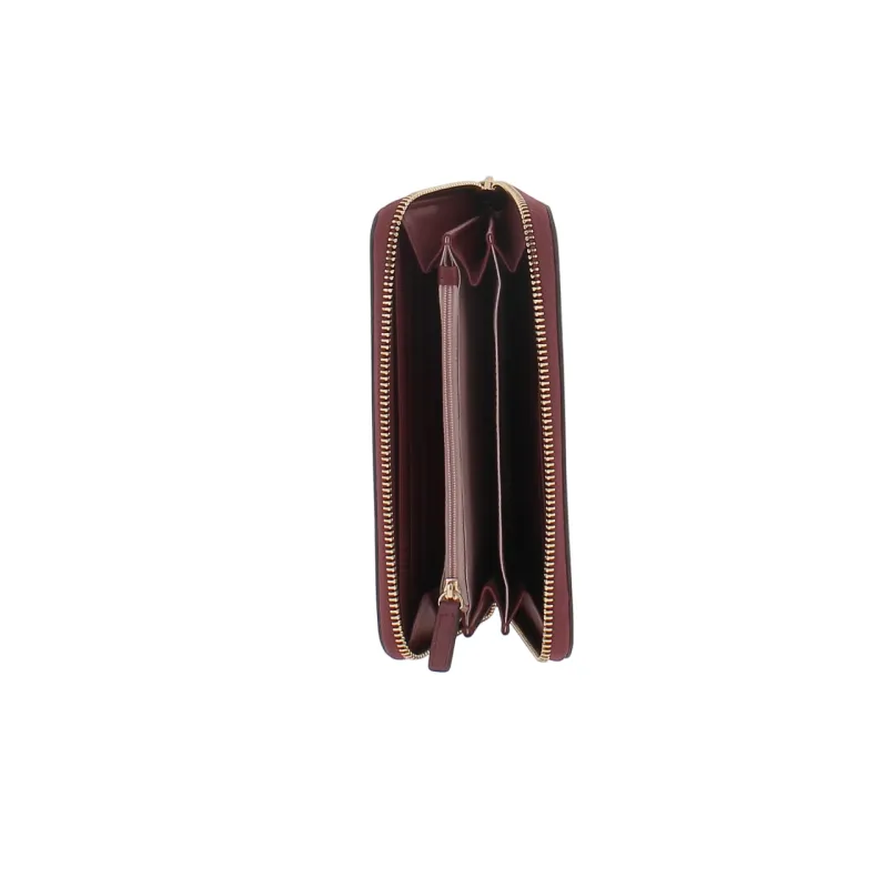 Dotato di chiusura con cerniera, mantiene al sicuro il contenuto interno. L’interno è diviso in tre soffietti, organizzato con fessure per carte di credito, tasche per documenti e una tasca con cerniera per le monete, pensata per un’organizzazione ordinata e funzionale.