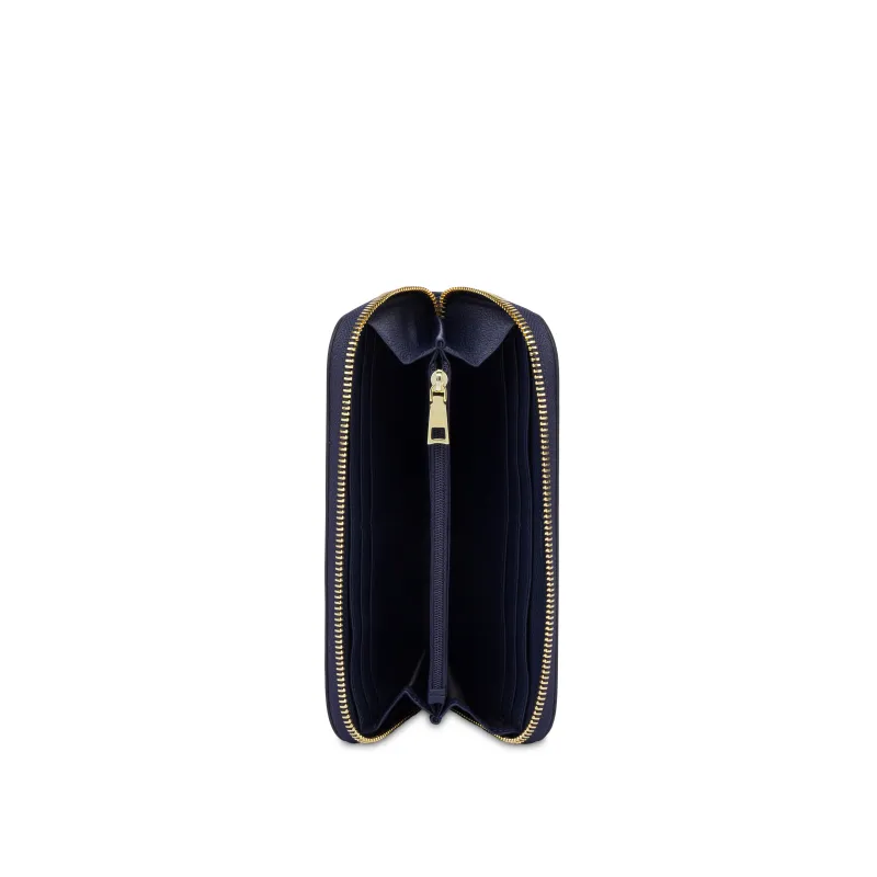 Linee essenziali e stile senza tempo definiscono il portafoglio Zip Around di Pollini. Il logo lettering centrale, iconico e immediatamente riconoscibile, aggiunge un tocco distintivo a un accessorio pensato per chi desidera unire eleganza e praticita in un unico modello. La chiusura con zip perimetrale garantisce sicurezza e facilita duso, racchiudendo un interno funzionale con due scomparti, una tasca portamonete centrale con zip e spazi organizzati per custodire con ordine lessenziale quotidiano. Un accessorio raffinato e versatile, ideale da abbinare alle borse della collezione Pollini.