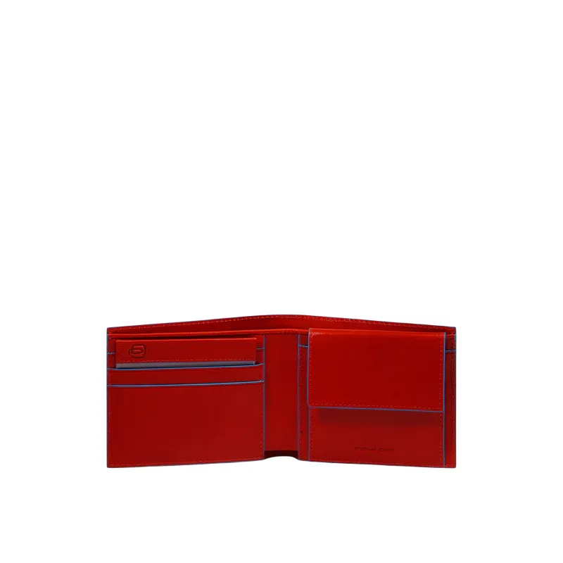 Portafogli uomo dalle piccole dimensioni della collezione Blue Square di Piquadro, realizzato interamente in pelle, dotato di portamonete, portadocumenti staccabile, 2 spazi per carte di credito, 2 comparti per banconote.