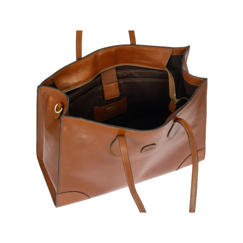 Ogni pezzo della Collezione Volterra di Bric's esprime l' eleganza naturale della pelle piu morbida e la cura artigianale che contraddistingue il marchio. Le cuciture precise, la finitura a costa e le minuterie in oro spazzolato valorizzano il carattere raffinato della borsa, rendendola un accessorio ideale per la vita quotidiana e per il viaggio.