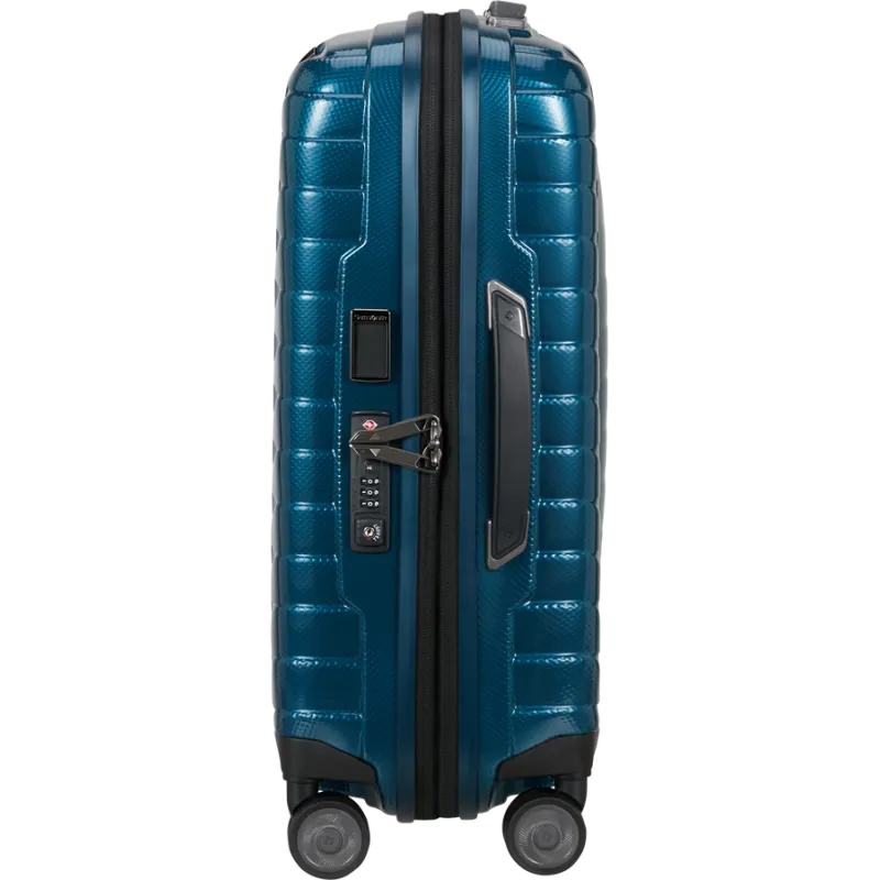 Dotato di chiusura a combinazione con funzione TSA, maniglia di traino bitubo, maniglie superiore e laterale e 4 ruote silenziose, il Proxis garantisce comfort di viaggio fluido e silenzioso. La funzione espandibile offre spazio extra quando necessario, mantenendo la praticità del formato cabina.