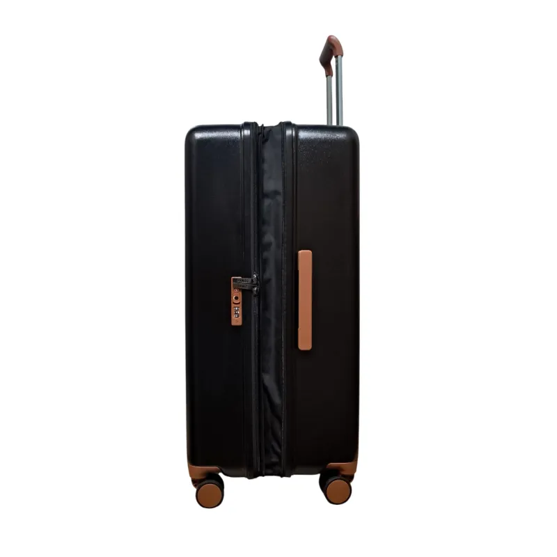 Trolley grande espandibile della collezione Ferrara di Bric's, realizzato in policarbonato, materiale leggero e resistente. L'apertura del trolley è dotata di zip con doppio cursore, impreziosita dalla finitura tono su tono. Il lucchetto TSA è integrato. Le quattro ruote sono silenziose e piroettanti per garantire il movimento agevole a 360°, e sono incassate per massimizzare la capienza del trolley. Internamente i trolley sono dotati di tasca con zip e sono divisi in due scomparti separati per favorire l'organizzazione dei propri oggetti. Rifiniti dalla fodera in tessuto. Per garantire il comfort di utilizzo, il sistema di traino è composto da tubi in alluminio robusti e stabili, multistop, con impugnatura ergonomica.