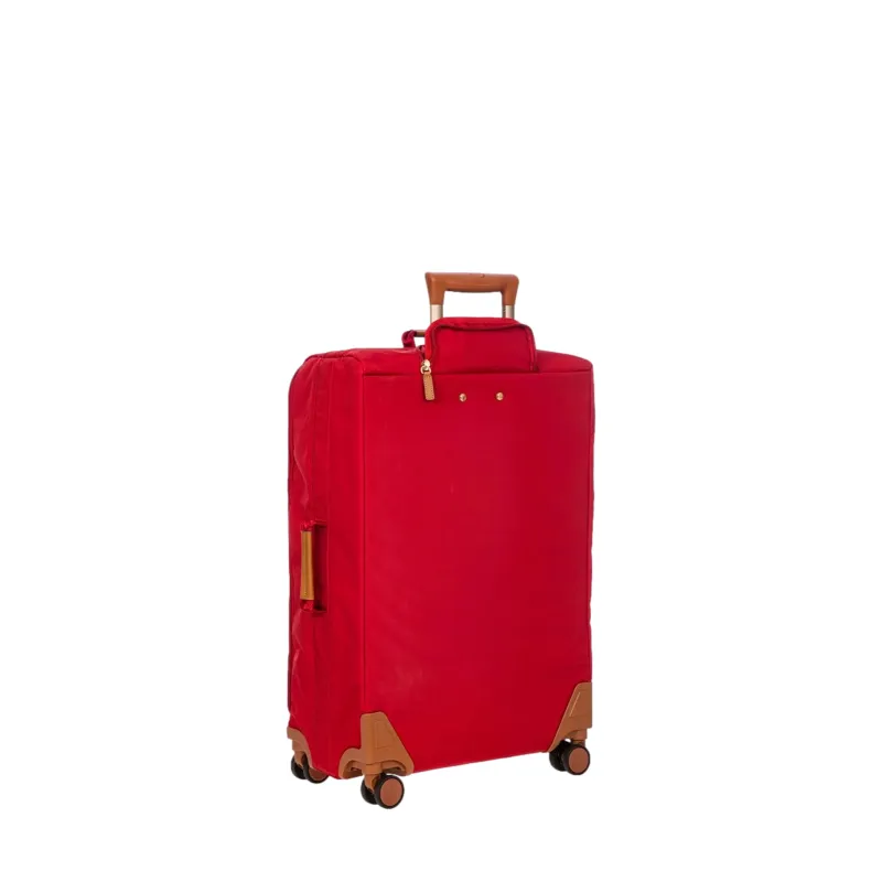 Trolley medio della collezione X-Collection di Bric's, realizzato in resistente tessuto riciclato, con struttura rigida e leggera. L'apertura principale è dotata di zip con doppio cursore. Due tasche frontali con zip, tasche interne e cinghie per un'organizzazione ottimale degli spazi. Le ruote sono silenziose e piroettanti per garantire il movimento agevole a 360°, e sono incassate per massimizzare la capienza interna del trolley. Le maniglie imbottite, i tubi in alluminio robusti e stabili e l'impugnatura ergonomica del traino garantiscono il comfort di utilizzo. Dotato di porta indirizzi integrato e anellini per predisposizione a chiusura con lucchetto (venduto separatamente). Arricchito da vera pelle, il segno distintivo di Bric's, e dai dettagli logati.
