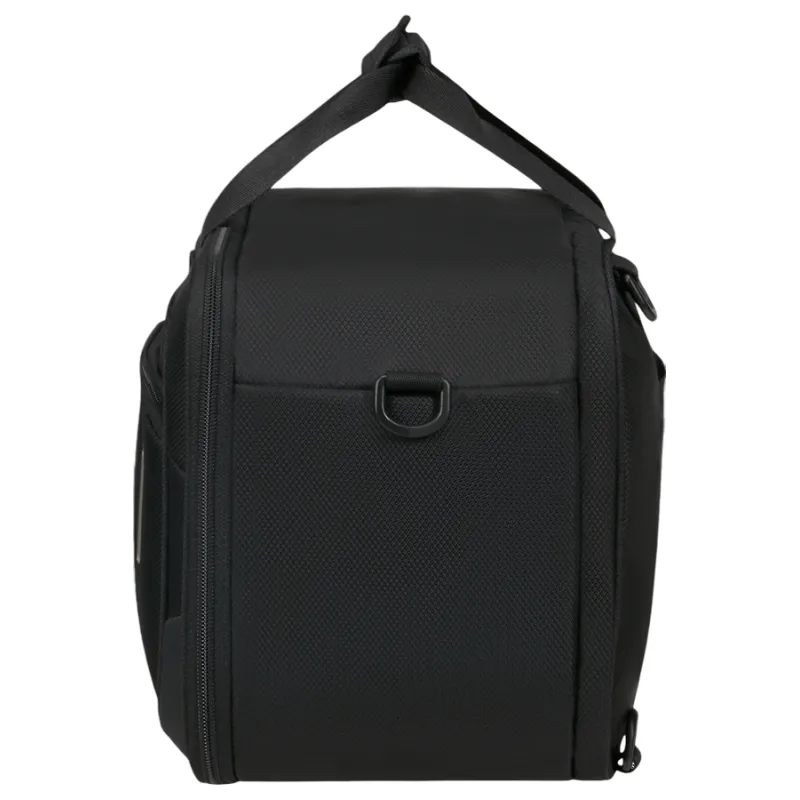 Borsa da viaggio indossabile a zaino della collezione Respark di Samsonite, le dimensioni consento di portarla in cabina come sotto sedile, dotata di due comparti uno adatto per riporre indumenti, l'atro per computer e documenti, due manici superiori, sistema di aggancio al trolley con passante, tracolla regolabile e rimovibile, nella parte posteriore è presente una tasca con zip dalla quale si possono estrarre gli spallacci.