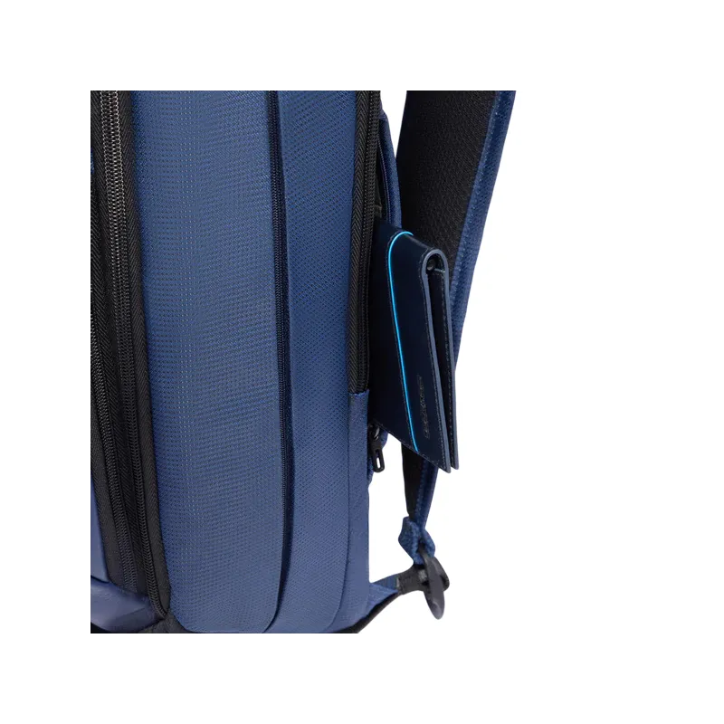 Zaino da viaggio porta PC da 15,6 in tessuto e pelle vegana Piquadro, blu