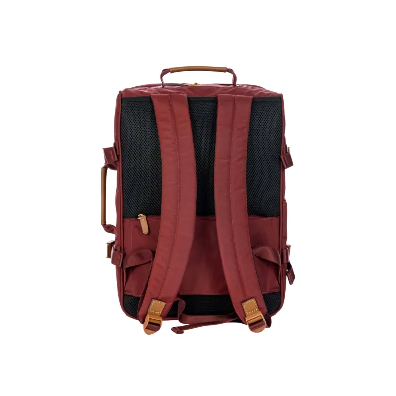 Zaino Porta da viaggio della collezione X-Collection di Brics, realizzato in nylon satinato con finiture in pelle bovina, dotato di doppio comparto con zip, uno dei quali indicato per inserirci indumenti e l'atro organizzato con tasca per computer e documenti, spallacci regolabili, imbottiti e traspiranti.