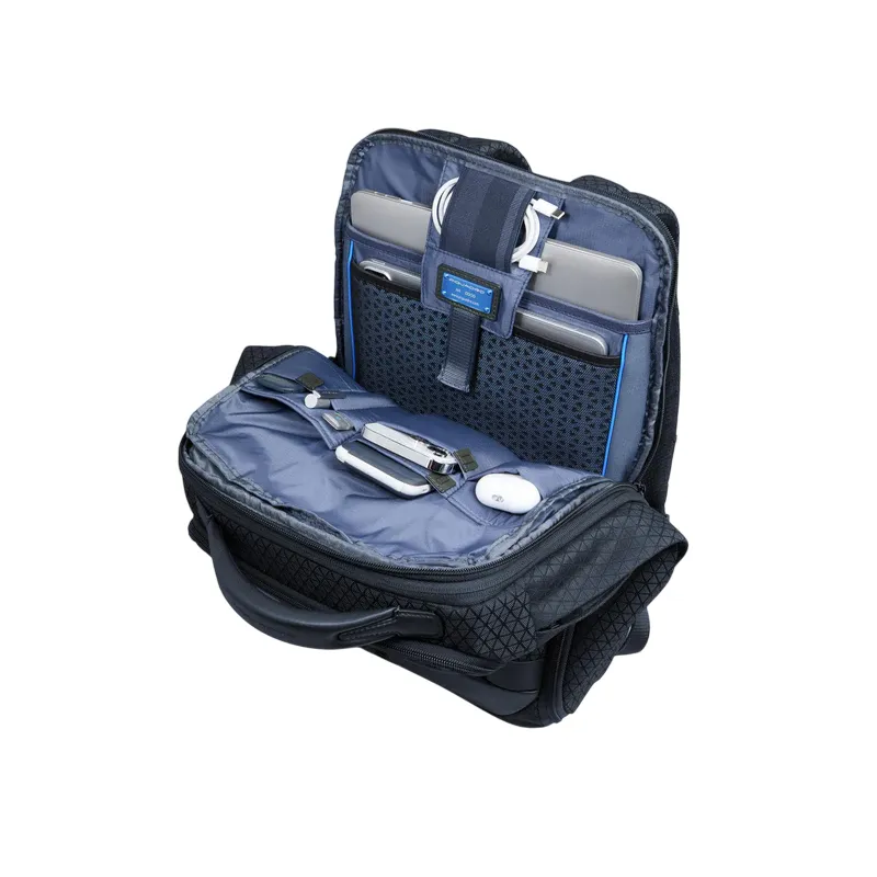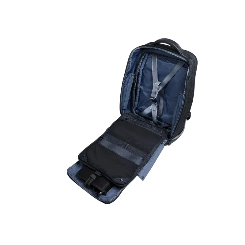 Realizzato in tessuto tecnico resistente all’acqua con dettagli in pelle, questo zaino offre 3 comparti capienti e ben organizzati. È pensato per accompagnarti nei viaggi di lavoro, nel commuting quotidiano o nelle trasferte brevi.
