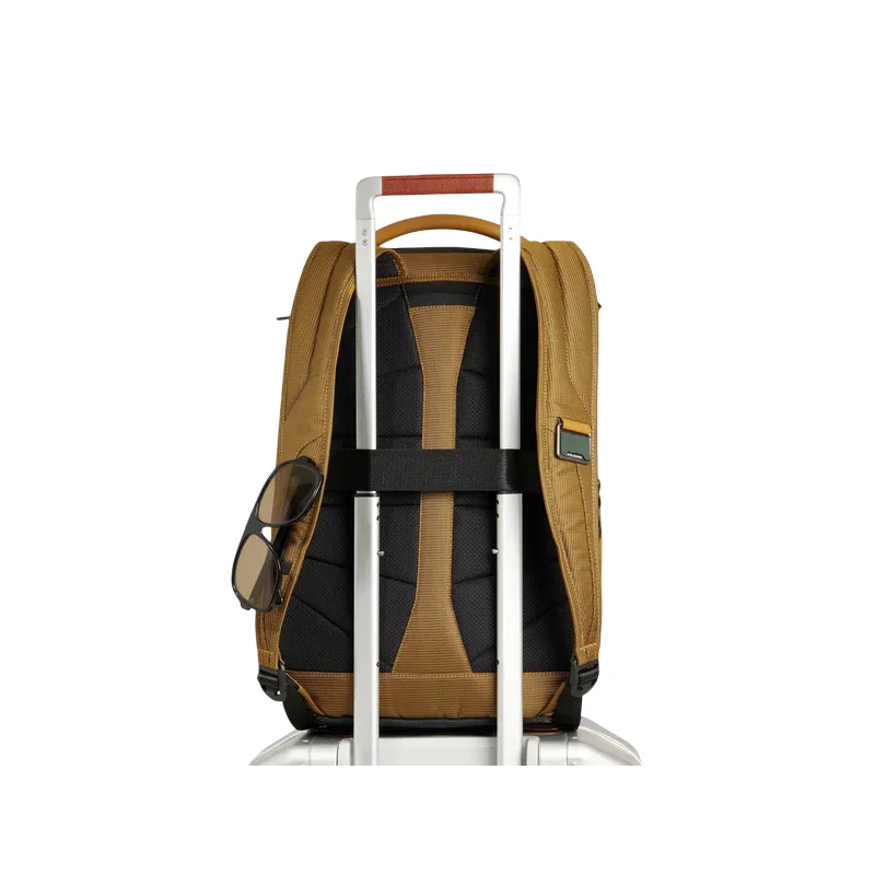 Zaino da viaggio porta PC da 15,6 in tessuto e pelle vegana Piquadro, miele
