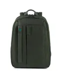 Zaino della collezione P16 di Piquadro, completo di manico sulla parte superiore, doppio comparto con zip, porta pc interno da 13 pollici, sistema di aggancio al trolley nella parte esterna posteriore, spallacci imbottiti e regolabili.