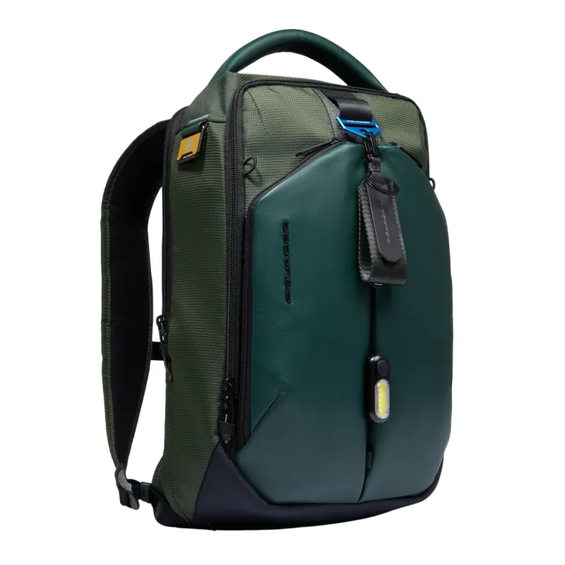 Zaino porta PC 14 con 2 comparti in tessuto e pelle vegana Piquadro, verde
