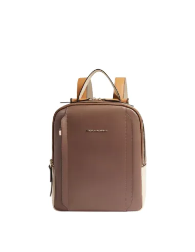 Lo zaino donna compatto della collezione Circle di Piquadro è l'accessorio perfetto per chi cerca praticità, qualità e stile in un formato compatto. Realizzato in pelle naturale pregiata, è dotato di due comparti con zip, ideali per organizzare al meglio gli oggetti personali.
