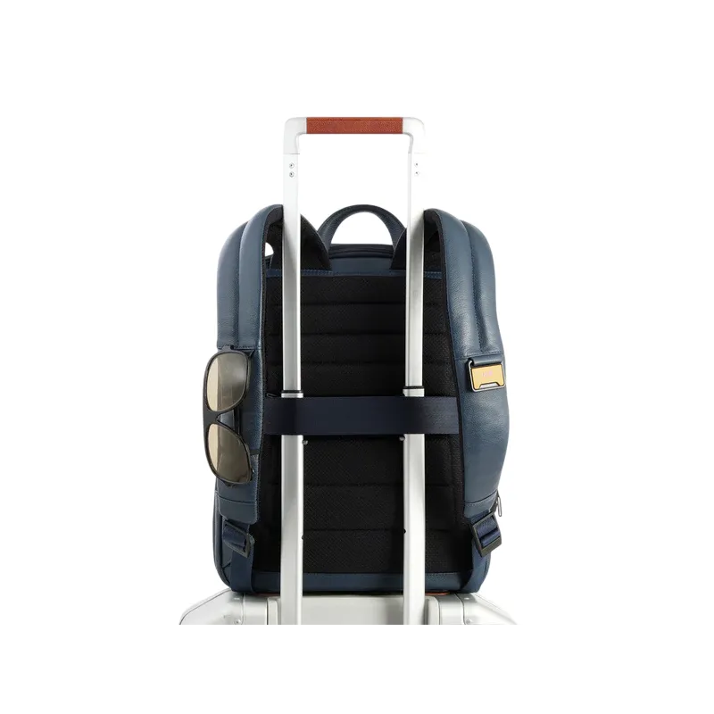 Zaino PC da 14 espandibile in pelle Piquadro Russel, blu