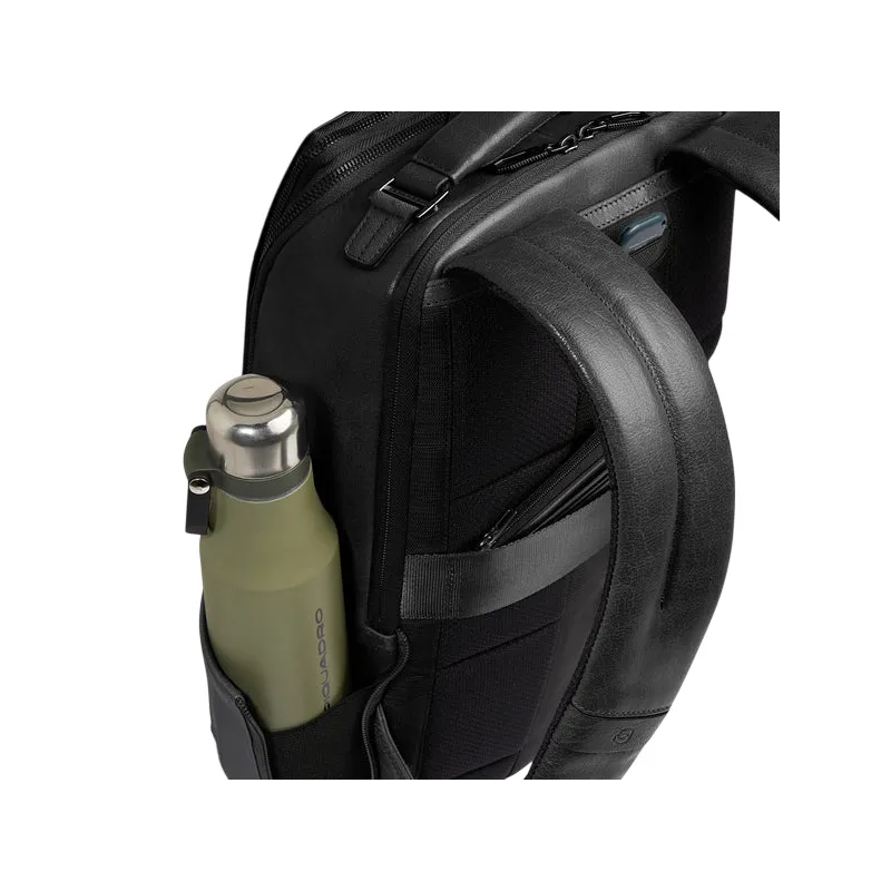 Zaino da viaggio personalizzabile in pelle porta pc da 14 Piquadro Solm, nero